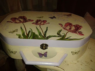 MALETA CON DECOUPAGE , STENCIL Y SELLOS